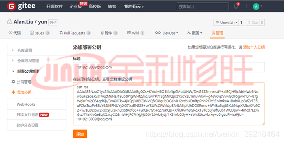 添加個人公鑰,這很重要,只有個人公鑰才能對倉庫有寫的權(quán)限