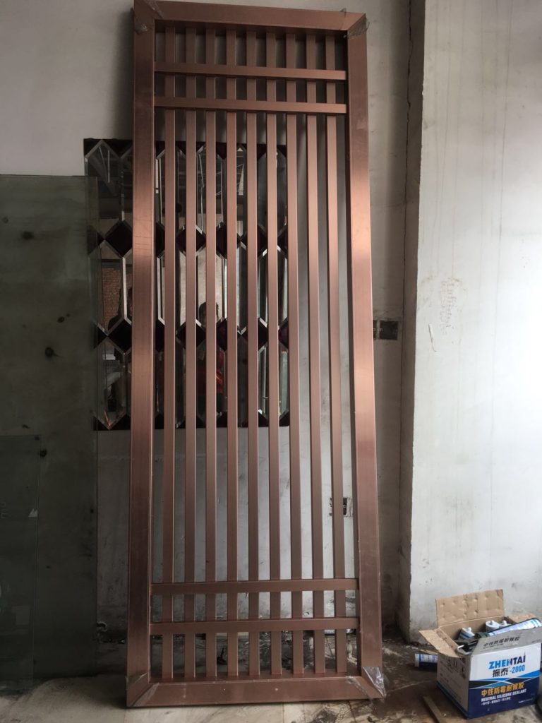 二、玫瑰金不銹鋼焊接拋光屏風: