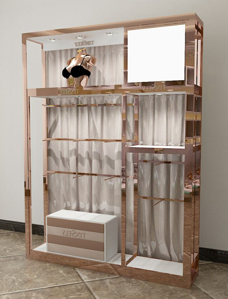 服裝店不銹鋼玫瑰金上墻展示架圖片