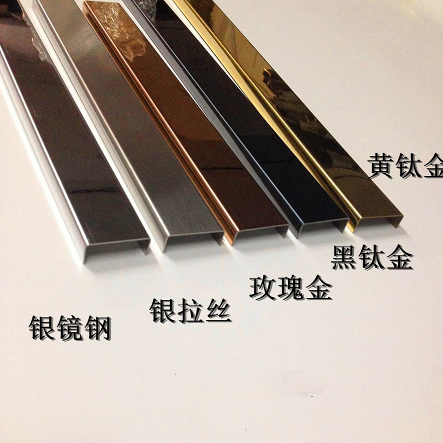 不銹鋼U型槽的材質(zhì)有201和304不銹鋼這兩種。201價格便宜,而且有現(xiàn)成的有色板,一般室內(nèi)的裝飾用201材質(zhì)的不銹鋼U型槽就可以了。它厚度一般是0.65-0.85mm,價格按延米和面積來計算,一般每平方米的價格在50-160元每平方米。不銹鋼U型槽有兩種制作工藝。一種是直接拿現(xiàn)有的201不銹鋼有色板進行剪板折彎加工。價格會很便宜。另一種是用普通的304拉絲板進行剪板折彎加工之后,再將它拿到鍍鈦廠去鍍鈦,這種工藝成本會比較高一些,大概要比第一種制作工藝要貴三分之一。