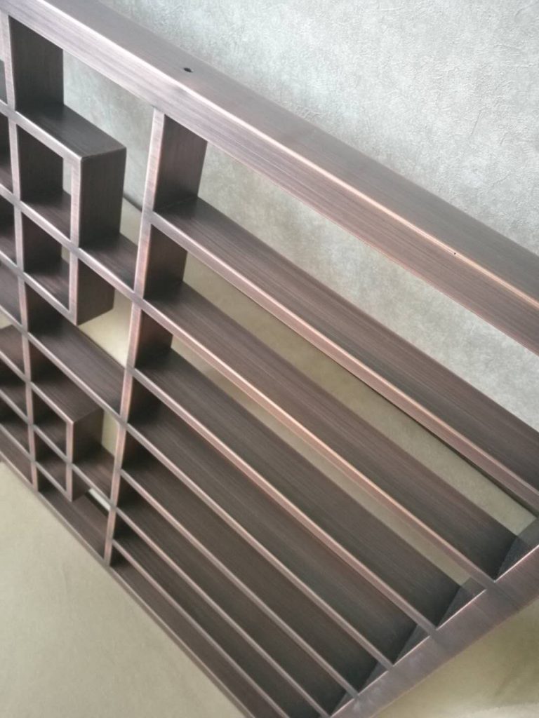 古銅做舊的不銹鋼恒溫酒架是一種美觀,大方,結(jié)實(shí),耐用的一款產(chǎn)品。尺寸可定做,可按客戶需要進(jìn)行定制加工。產(chǎn)品的工藝流程主要有:用不銹鋼拉絲板或者不銹鋼管進(jìn)行焊接,然后拋光打磨。處理干凈之后再經(jīng)過古銅做舊的表面處理工藝,就完成了。酒架的材質(zhì)方面我們可以采用不銹鋼材質(zhì)和鋁板或者是銅,銅不推薦使用,成本高價(jià)格太高,我們?nèi)绻窍胍龉陪~色的話直接使用不銹鋼或者鋁板做仿古銅效果就行了。做舊工藝非常成熟,顏色好看別致不要錯(cuò)過。