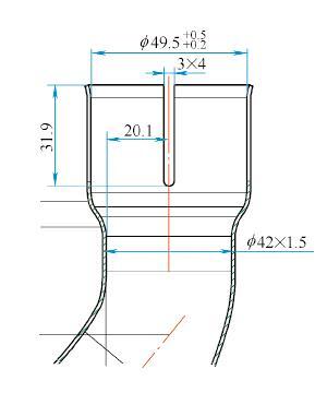 從圖3可以看出,密封夾緊槽3mm×4mm常規的工藝采用壓力機,分4次一槽一槽沖,目視對標保持均布,且需要做沖剪模,模具易磨損,加工之后存在不圓、毛刺多,且塌邊,易引起排氣管石墨圈密封漏氣,所以要求手工去毛刺、整形合格后才可用,這樣生產效率低、成本高且質量不穩定。如采用激光切割不需要模具,只要相類似結構,不管尺寸多大,調整一下程序,就可加工,速度可達每分鐘10m, 一件產品只需幾秒即可完成,無上述質量缺陷,也無需要二次加工,生產效率大幅度提高,人工成本大幅度下降,品質得到明顯改善。