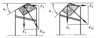 圖5.1.11 主偏角對切削寬度和厚度的影響