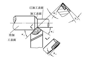 在切削平面中測量的主切削刃與基面之間的夾角。當(dāng)?shù)都馐乔邢魅猩献罡唿c時,規(guī)定λs為正值;刀尖是切削刃上最低點時,規(guī)定λs為負(fù)值。